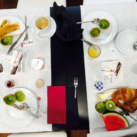 | Petit déjeuner à l'hotel, où on apprend que chacun a sa façon de manger ses kiwis. On voit bien que Natascha et moi, on a tout compris. En 2 jours, tout le monde mangeait son kiwi coupé en 2 à la cuillère. |